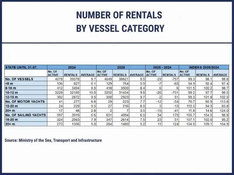 What should ring the alarm more is the decline in the number of rentals in the most massive segment of boats with a hull length of 10 to 12 meters, which make up 80% of the market from 38,600 realized rentals. There the number of bookings went down by 2.7%.