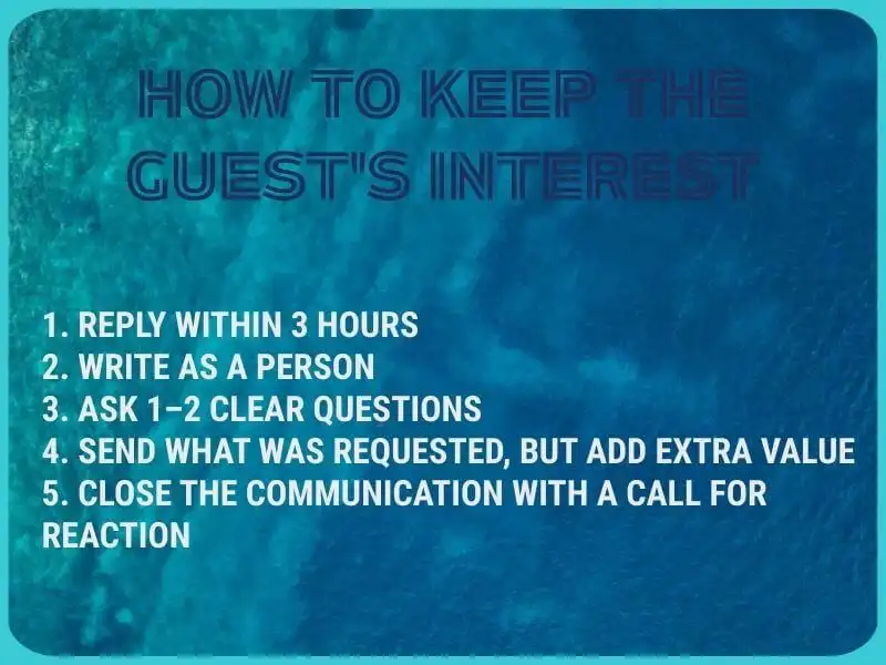 That’s exactly why the first two sentences you send often decide whether the guest will contact you again at all. And this is where mistakes happen most often.