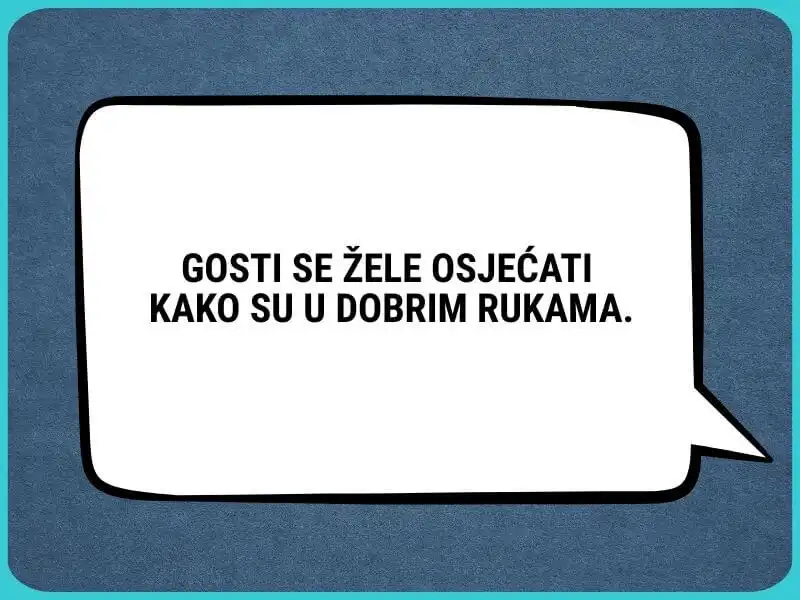 Gosti se žele osjećati kako su u dobrim rukama. Ako djelatnici međusobno ne komuniciraju i dolazi do nesporazuma, ostaje dojam amaterizma, čak i kad je sve ostalo bilo korektno.