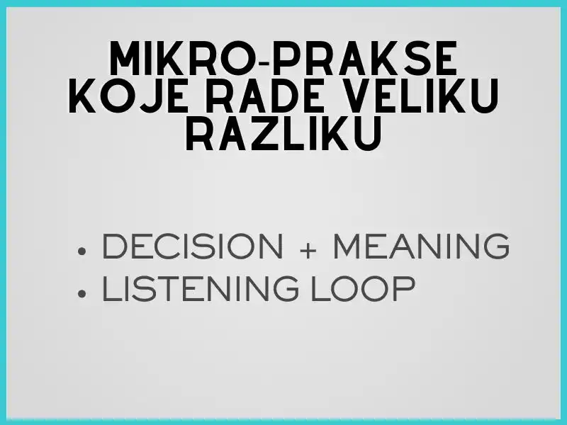 Poslovni svijet je desetljećima treniran da nagrađuje egzekuciju: brzinu, kontrolu, metrike i skaliranje. I to je dio razloga zašto transformacije pucaju. Jer bez konteksta, sigurnosti i povjerenja ljudi postaju “usko grlo” svakog sustava.